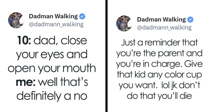 A dad who goes by the alias Dadman Walking does exactly that—shares his relatable fatherly experience on social media in the form of short yet witty and accurate remarks, commentary, jokes, and anecdotes.