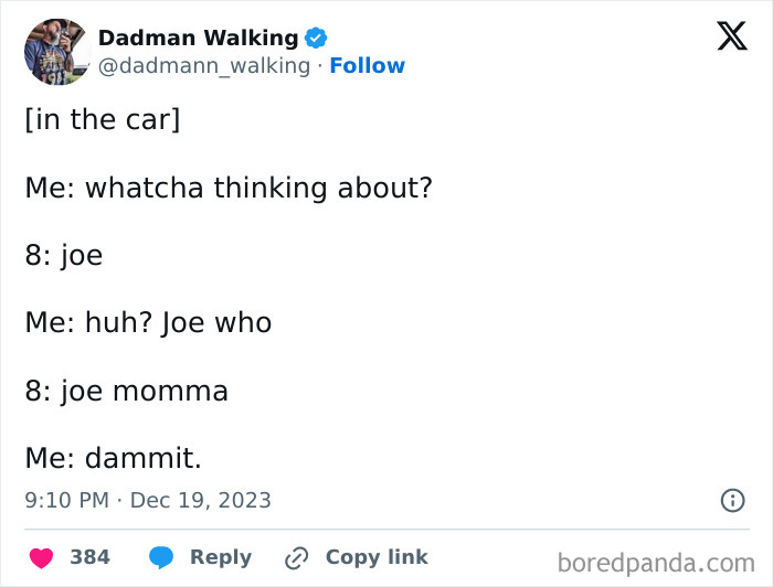 So, Dadman Walking, also known as Shane, introduces himself as an introvert, husband and father of 3 and urges folks to not take him seriously on social media. Though you can’t argue against his posts being spot-on.
