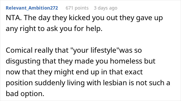 Load More Replies...NTA. If you think about it pragmatically, if they were not in financial straits you would have never heard from them for the rest of your life. Ever. You owe them zero.