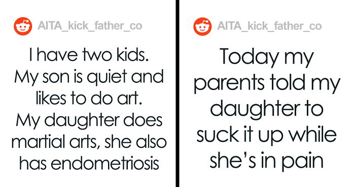 “They would both always comment (to me) about their behaviors and hobbies with comments such as ‘He’s not very manly’ or ‘that’s not very ladylike’ and other such comments,” wrote the dad about his mom and dad being needlessly mean to his kids.