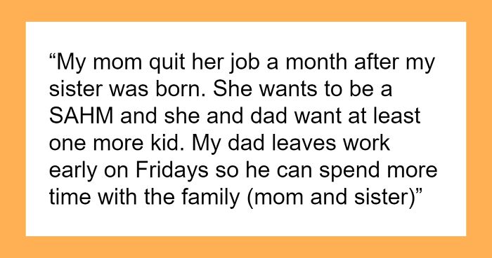 They’re practically asking their 15-year-old daughter to parent her own sister because they’re too busy making new ones. It’s a classic case of parents viewing their oldest as an extra pair of hands instead of, you know, a teenager with her own life and needs.