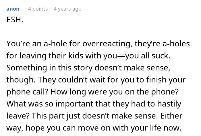 Load More Replies...Those ESH people must be the parents who ditch their kids on unsuspecting babysitter...it's just wild to me