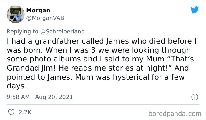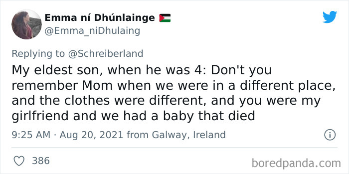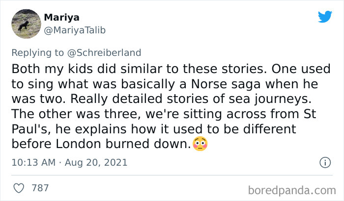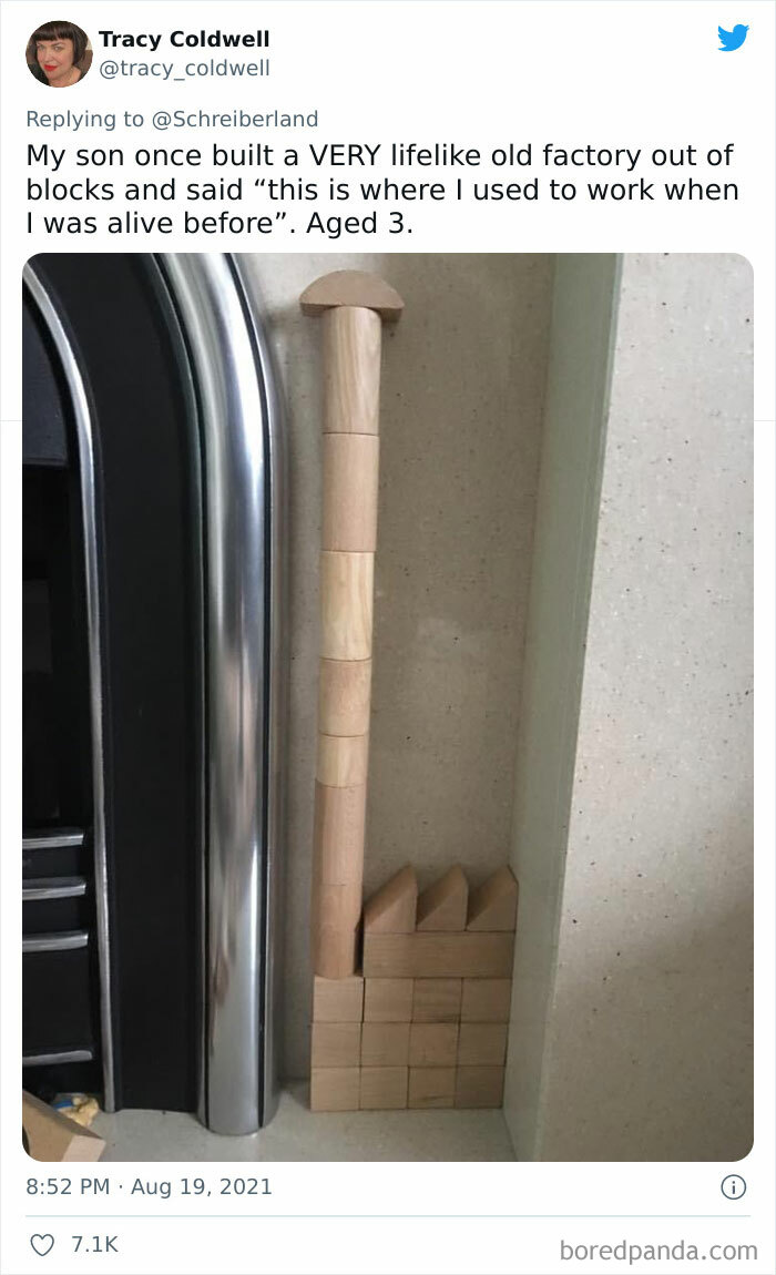 Load More Replies...Little kids just learning to talk are like monkeys at typewriters. A lot of what they say is complete gibberish, every once in a while they’ll say something that sounds very smart/creepy/funny etcetera.
