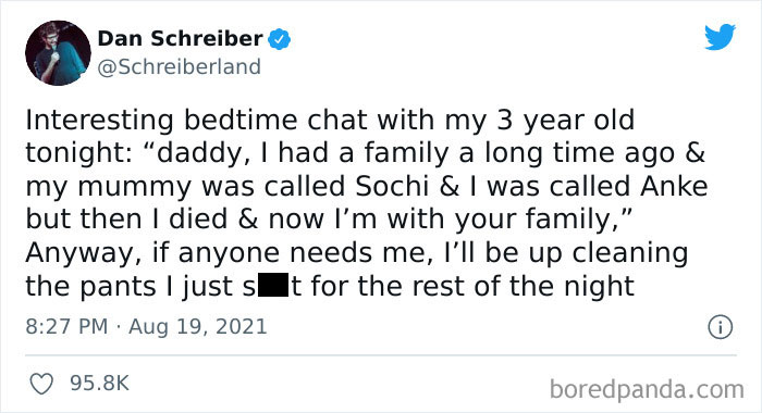 When Dan Schreiber shared a particularly creepy thing his child told him, moms and dads quickly expanded his tweet into a strangely funny thread, full of lines and concepts you'd think exist only in horror movies. Here are some of the best!