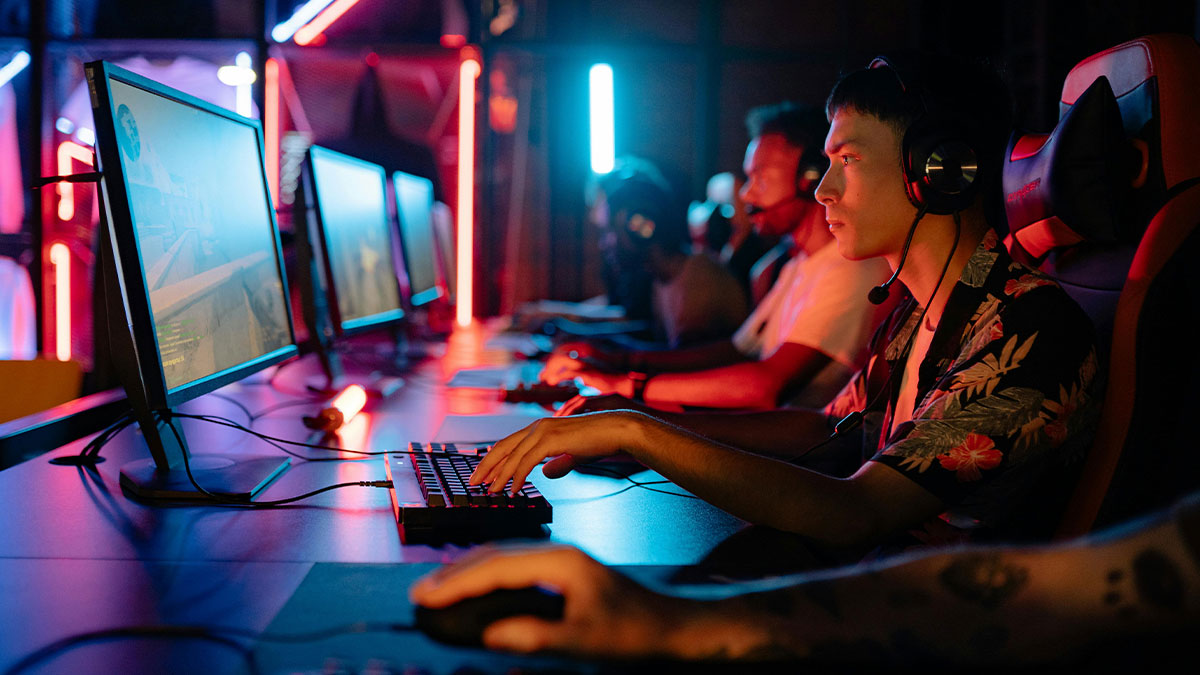 That's me and my boyfriend, but I don't give him c**p about his gaming. I'm perfectly fine doing my own thing. I like knowing he's there.