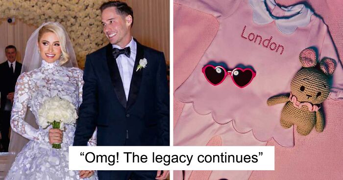 The 42-year-old heiress shared the exciting news with pictures of a pink baby outfit with the name London.