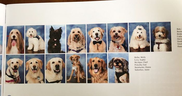 And while it’s understandable what a heavy burden it is to create a yearbook just one year after the gruesome tragedy, the staff made a perfect choice to commemorate the silent healers, 14 therapy dogs, of those who survived a despicable attack on their lives.