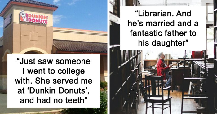 I graduated ~15 years ago, and just saw someone I went to college with the other day. She served me at Dunkin Donuts, and has no teeth. It made me sad for her.