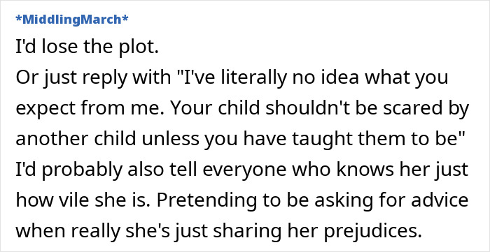 This is where you go "I'm sorry you haven't taught your child that just cause someone looks different on the outside, it doesn't mean they aren't beautiful on the inside."