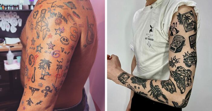 Random Full Arm Patchwork Tattoos