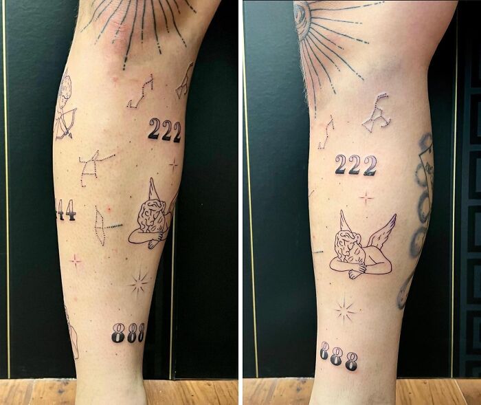 Small Patchwork Leg Tattoos