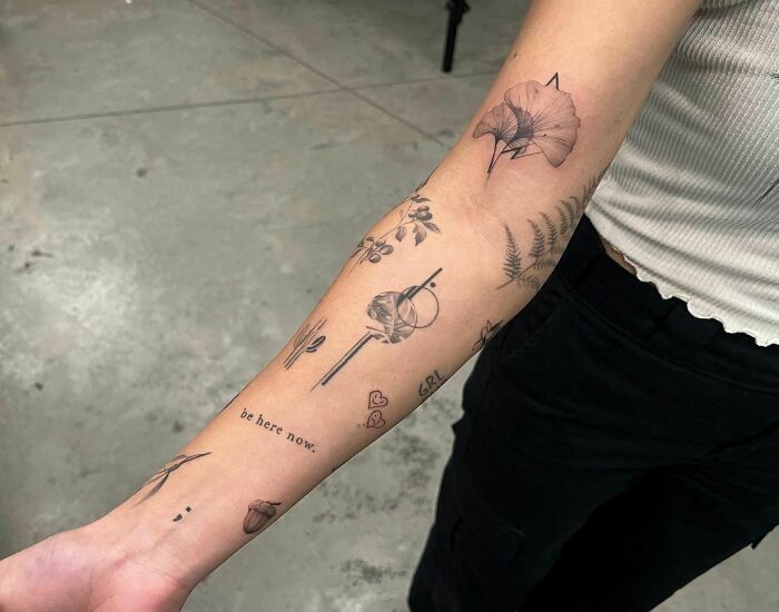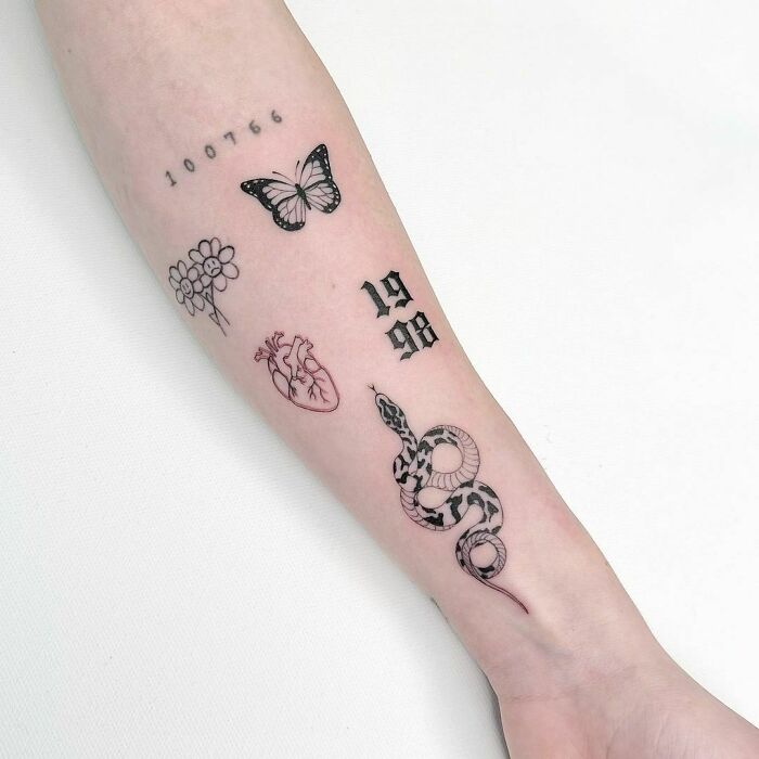 Minimalistic Forearm Patchwork Tattoos