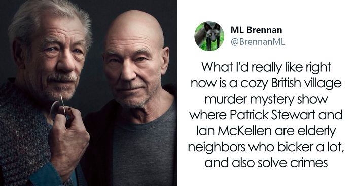 Author M.L. Brennan came up with a new version recently. “I think what I’d really like right now is a cozy British village murder mystery show where Patrick Stewart and Ian McKellen are elderly widower neighbors who bicker a lot about their gardens, and also solve crimes,” Brennan tweeted. They went on to develop their pitch, and it quickly won over the Internet. As of this article, Brennan’s Twitter thread with the concept of the show has over 86K likes and 17K comments, many of which are begging TV execs to make it a reality. Continue scrolling and check it out for yourself!
