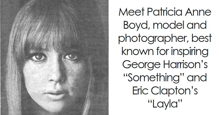 Patricia Anne Boyd’s career breakthrough arrived with her appearance in The Beatles’ 1964 film A Hard Day’s Night. She became a pivotal muse, inspiring George Harrison’s “Something” and Eric Clapton’s “Layla” and “Wonderful Tonight”.