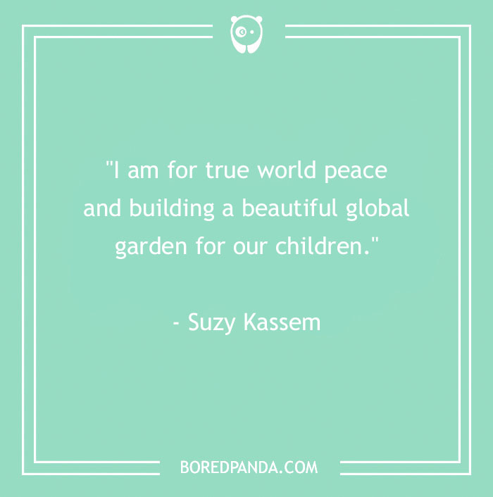 "I am for true world peace and building a beautiful global garden for our children." - Suzy Kassem