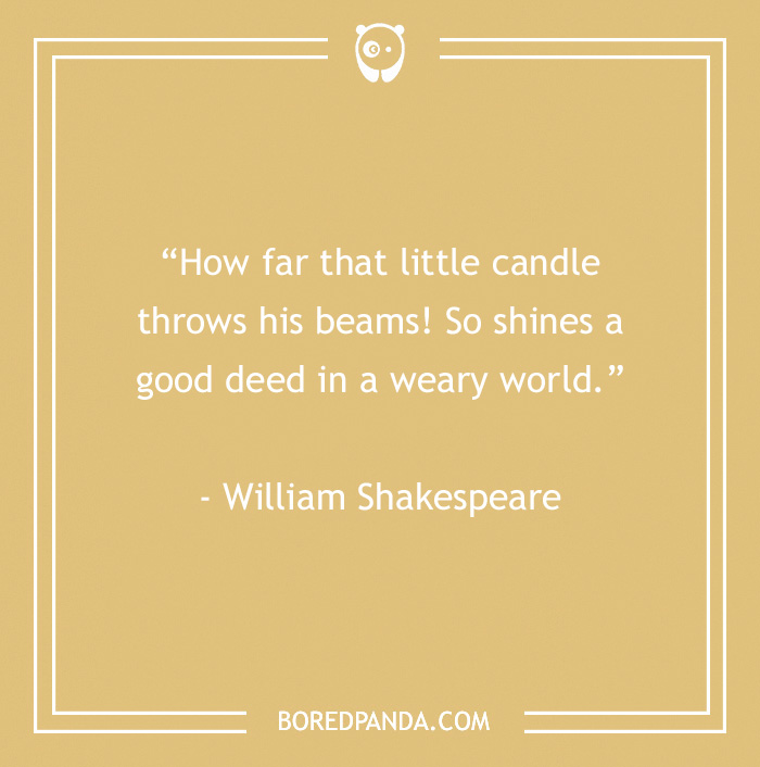 “How far that little candle throws his beams! So shines a good deed in a weary world.” - William Shakespeare