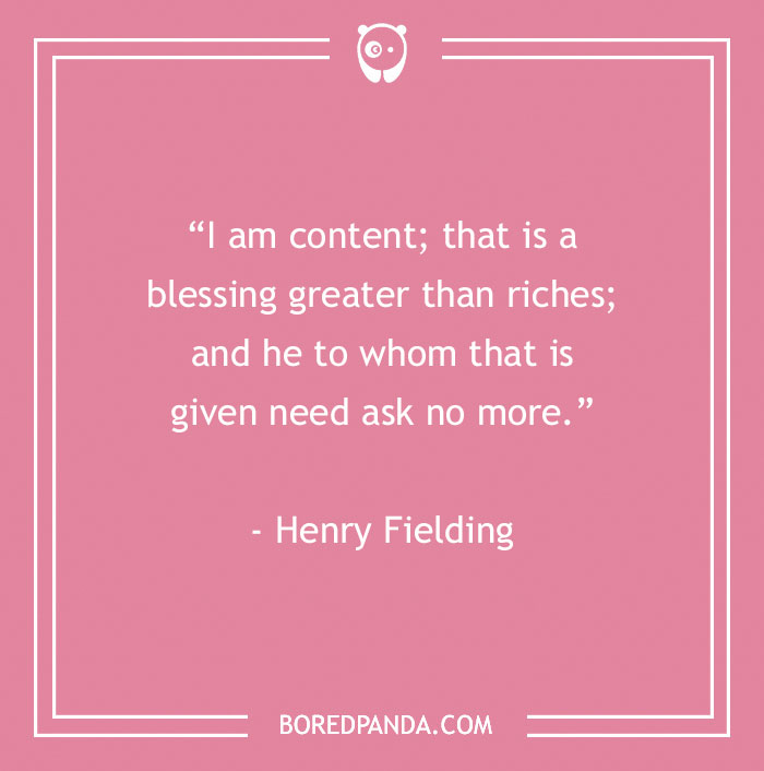 “I am content; that is a blessing greater than riches; and he to whom that is given need ask no more.” - Henry Fielding