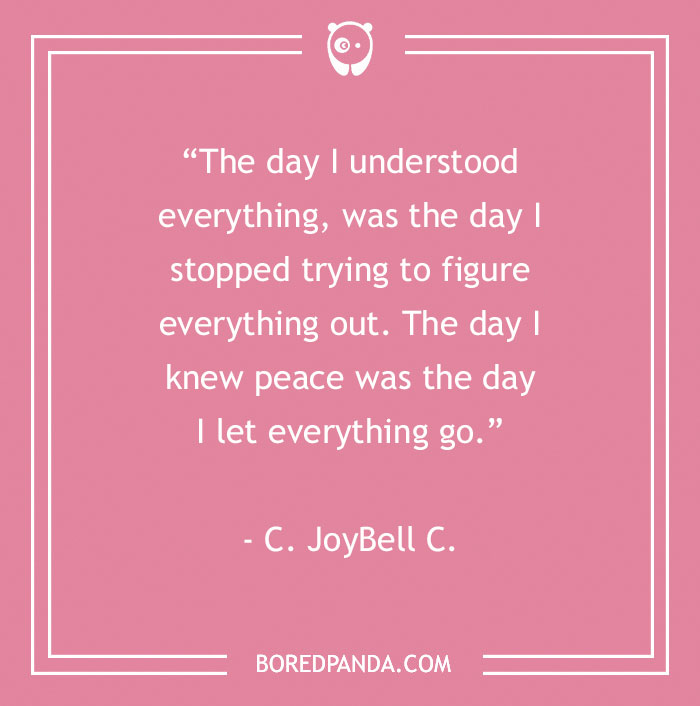 “The day I understood everything, was the day I stopped trying to figure everything out. The day I knew peace was the day I let everything go.” - C. JoyBell C.