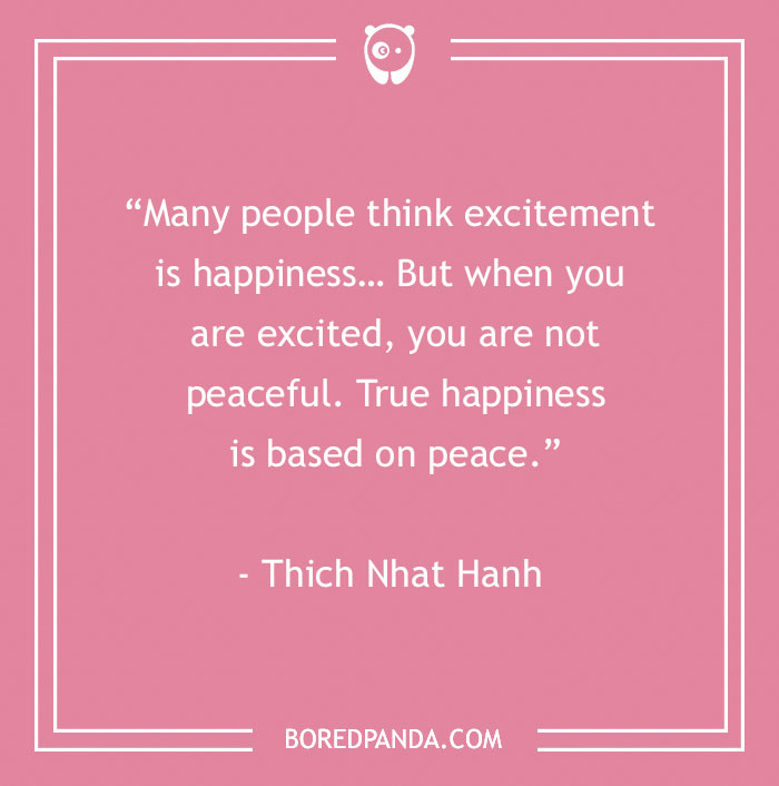 “Many people think excitement is happiness… But when you are excited, you are not peaceful. True happiness is based on peace.” - Thich Nhat Hanh