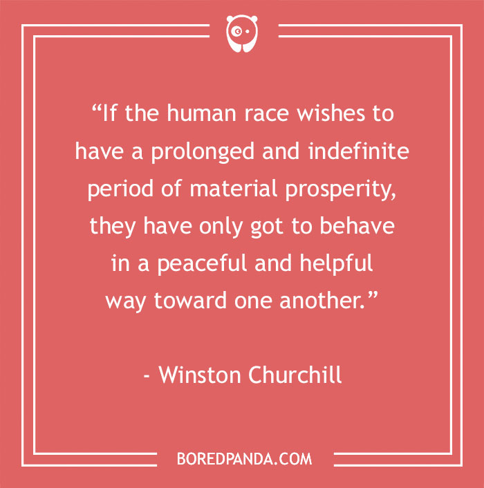 “If the human race wishes to have a prolonged and indefinite period of material prosperity, they have only got to behave in a peaceful and helpful way toward one another.” - Winston Churchill