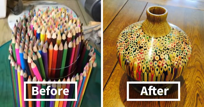 Vases are usually made from glass or clay, but Nick from NZ Woodturning decided to create one using pencils. “I like to be different,” the artist said. “Most things I make you wouldn’t have seen before.” Nick stacked 4 layers of pencils around a block of wood, filled the gaps with resin which, after completion, created an awesome 3D effect. “It’s a bit of a funny shape, but it’s a funky piece anyway!”