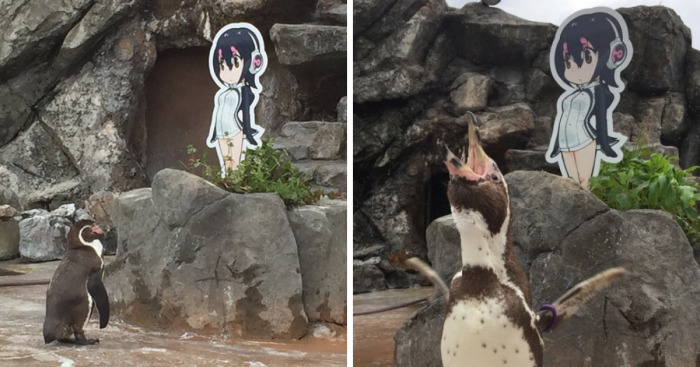 A love affair involved a penguin and a figure of an anime heroine in cardboard lately