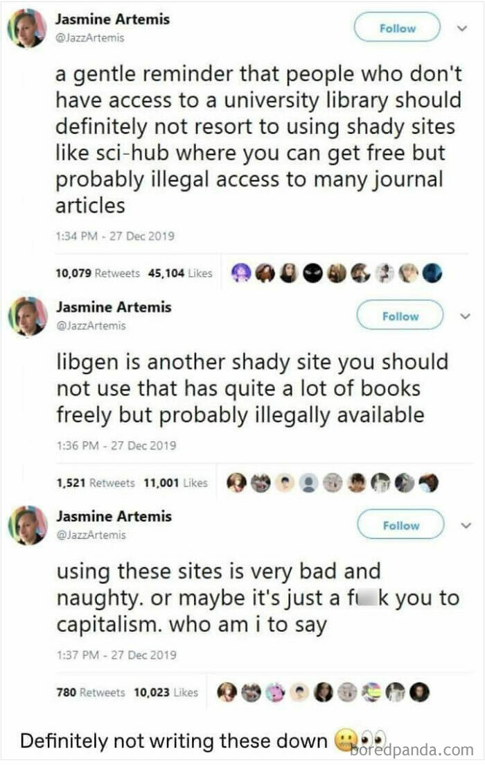 This may be a bit 'scandalous' for BoredPanda, but there is an entire genre of memes for AO3 author's notes in which authors apologize for updating their fanfictions late and then go on to explain the reason, which is usually something along the lines of 'My house burned down', 'I just had a baby', 'I was deployed to the front lines' and my personal favorite, 'my beta reader is in jail and I have to print and mail the chapters to her'. There's no type of passion like the type you find in fan communities.
