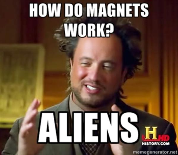 Magnets. Don't understand how they have that physical force locked up in them. Seems to break the laws of physics or something. I don't trust them.