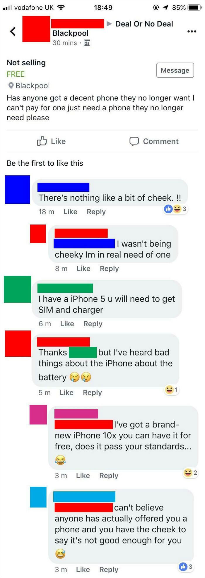 Asking For A Free Mobile Phone, And Then Rejecting An Offer