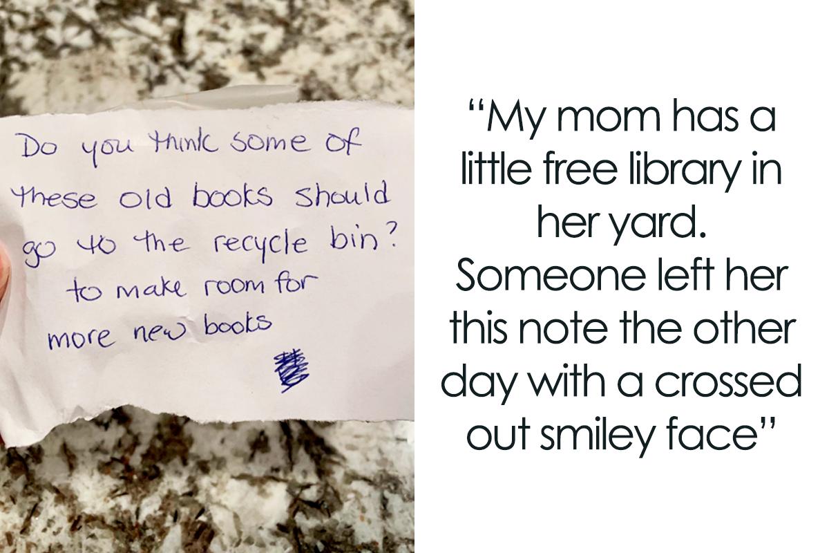 My Mom Has A Little Free Library In Her Yard. Someone Left Her This Note The Other Day With A Crossed Out Smiley Face