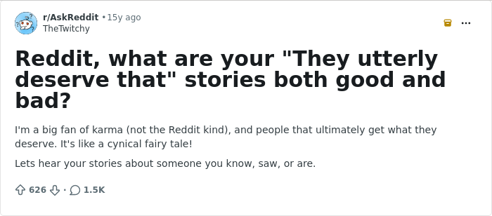 But the reason this thread exists, and the reason everyone clicked on it immediately, is mostly because of the other kind. The bad karma. The stories about people who lied, cheated, manipulated, and bulldozed their way through life right up until the moment the universe quietly cleared its throat and said: actually, no.