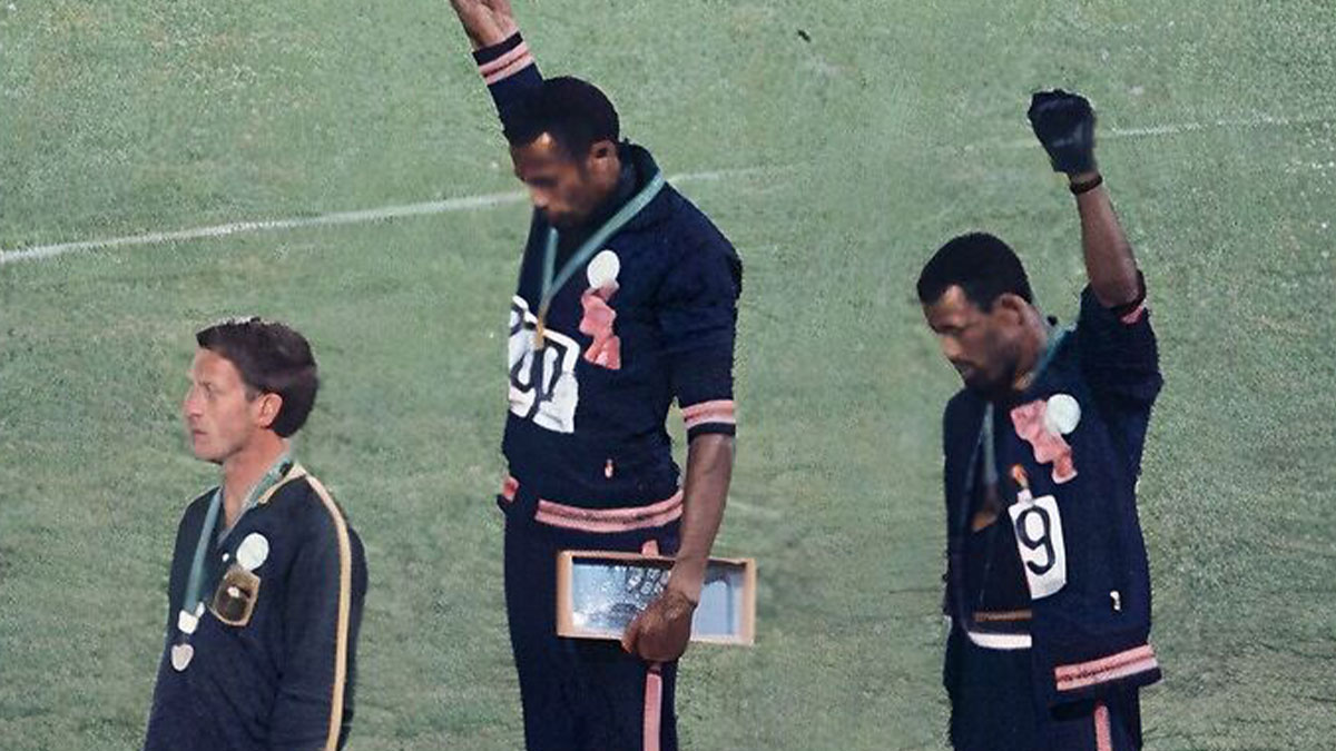 Tommie Smith and John Carlos. 1968 Olympics, had their medals taken away b/c they dared to non-violently protest white supremacy.
