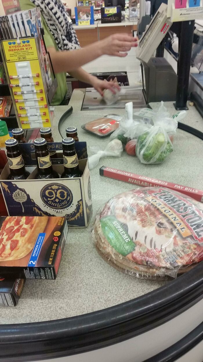 Yup! When I go for a snack run and get the most random stuff and somehow get stuck behind someone at the till who loaded up on vegetables and good meat. I'm hoping I'm not judged.