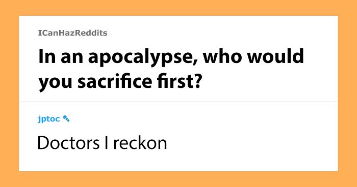 That’s exactly what Reddit user Jptoc asked his fellow internet users to do to entertain them during the quarantine. Jptoc told people to ask them a question and then to edit it to make them sound like a complete jerk with their answer. The thread was wildly popular on the r/CasualUK subreddit, with over 63.6k upvotes in a single day and more awards than we could count.