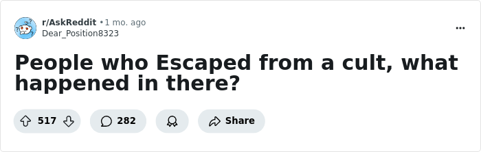 Check out their firsthand accounts to see what we mean. These are responses to a recent Reddit thread in which someone asked what life was like as a member of an organization with shady practices, to say the least.