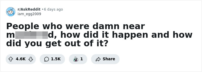 Some of these people, who were probably born under a lucky star, shared their stories on a thread started by a member of the ‘Ask Reddit’ community. The Redditor addressed netizens who have been close to losing their lives, asking them not only about how their situations unfolded, but how they managed to get out of them, too. If you’re interested in reading their stories, scroll down to find them on the list below, but beware—some of them might be seriously disturbing.