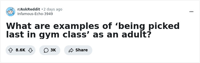 “What Are Examples Of ‘Being Picked Last In Gym Class’ As An Adult?” (37 Responses)
