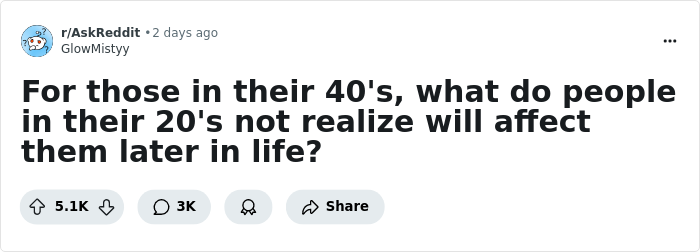 These 40-somethings would know, and they are sharing their nuggets of wisdom with 20-year-olds in this Reddit thread. If you’re a youngster who has yet to reach your prime, you may want to take notes and save yourself from potential future suffering.