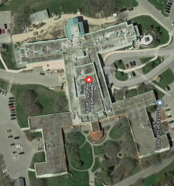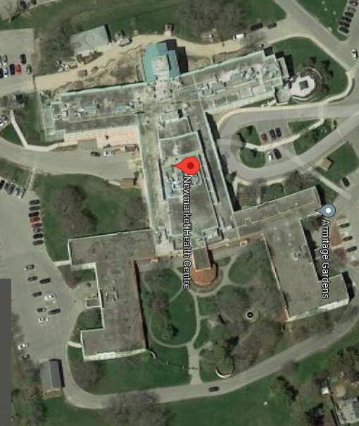 This is not a joke. Search for Newmarket Health Center at maps.google.com and zoom in on pink area. Switch to satellite view for more awkwardness.
