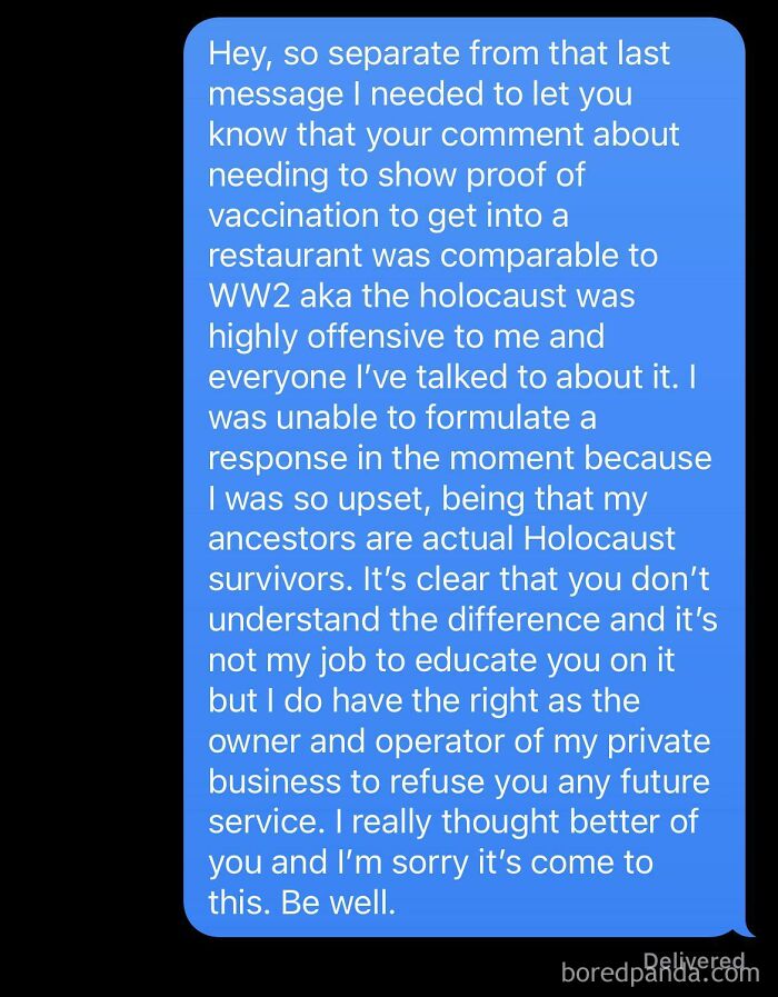 I Had To Fire A Client For Comparing A Restaurant Requiring Vaccine Proof To Ww2. Throwaway To Protect My Privacy