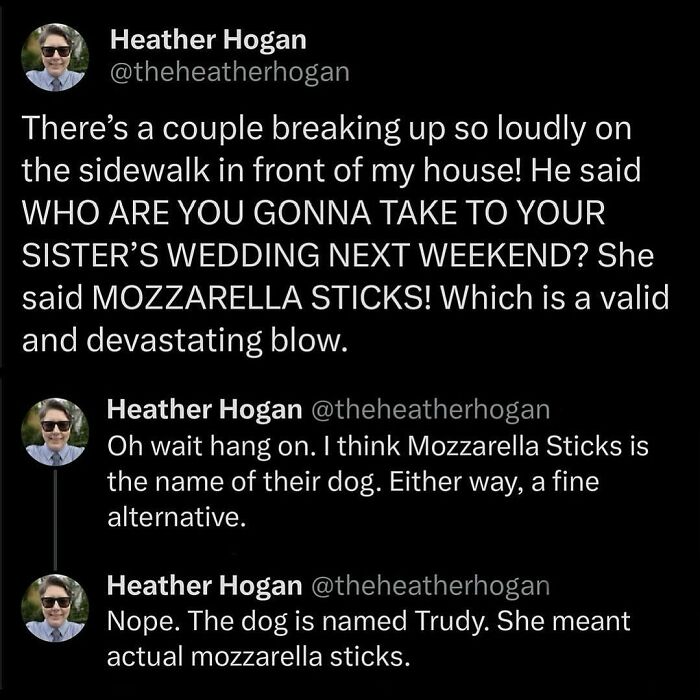 Is that the same woman who brought mozzarella sticks to her sister's wedding?