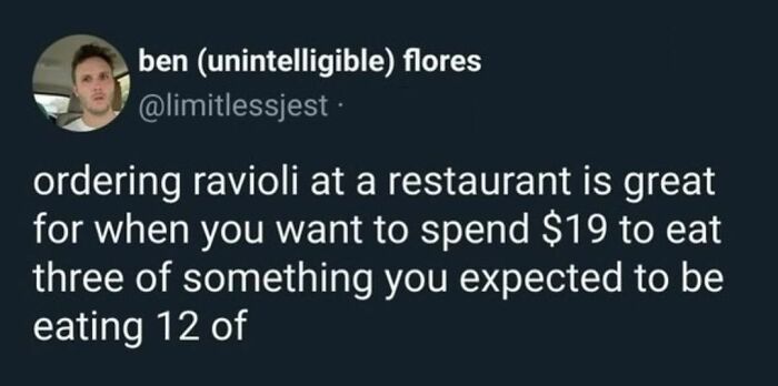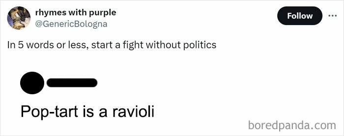 Load More Replies...They are so, so fundamentally wrong. Ravioli are small pasta envelopes containing ground meat, cheese, or vegetables. Pop-Tarts have a sugary filling sealed inside two layers of thin, rectangular pastry crust.