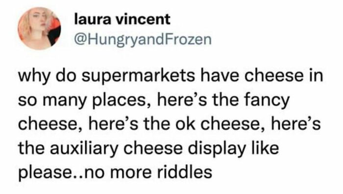 And then there’s Velveeta - which could be next to the soaps or cosmetics