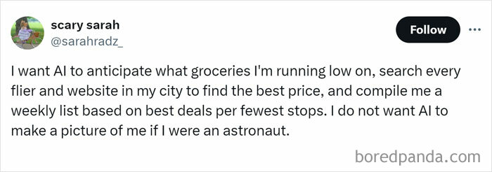 use AI to solve problems and do thinks i don't enjoy not to create art and do fun things i want to do