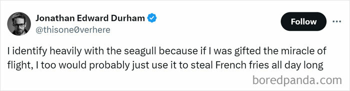 It's the human's own fault for having such delicious foodstuff. Feathered dinosaurs want delicious treats, too!