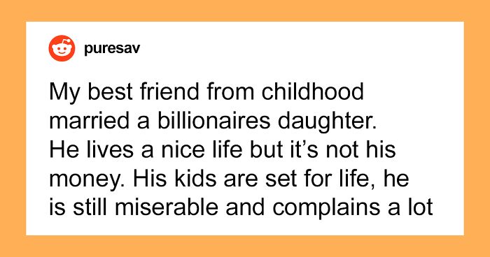 My best friend from childhood married a billionaires daughter. He's still depressed and still himself. He lives a nice life but it's not his money. His kids are set for life, he is still miserable and complains a lot... But what can you do he's a mate.