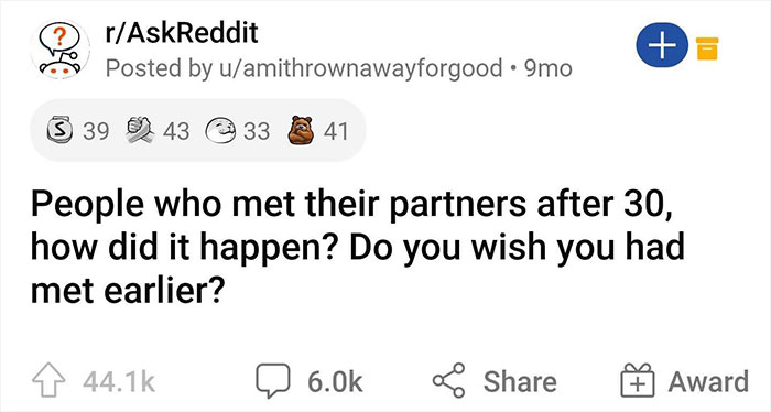 Prompted by redditor u/amithrownawayforgood, people have been sharing their cute, adorable, and thoroughly romantic stories of having met their partners after 30. The stories are sweet and you might feel your hearts melt just a tiny bit, dear Pandas. Scroll down, have a read, and remember to upvote the posts that made you go, ‘Aww, that’s nice.’ No pressure, but if you’re feeling up to it, why not share your own romantic tale of how you met your partner in the comments.