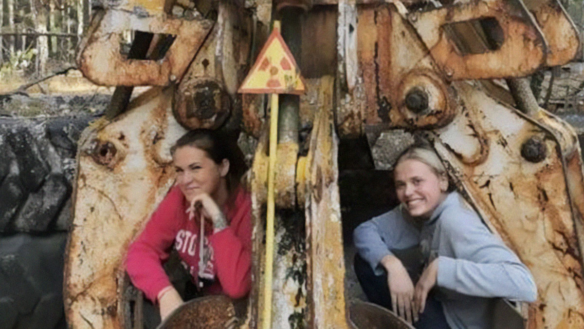 Tourists In Chernobyl, Sitting In An Excavator Claw Used After The Disaster. (It Has Deadly Levels Of Radiation)