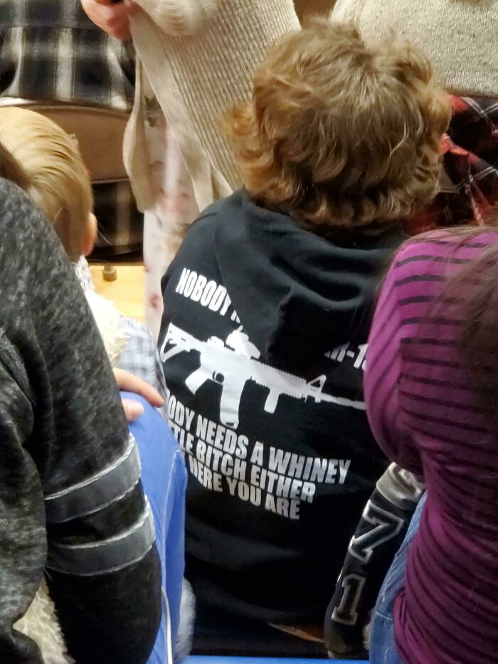 Wearing This At An Elementary School Christmas Concert. "Nobody Needs An Ar-15. Nobody Needs A Whiny Little Bitch Either, But Here You Are"