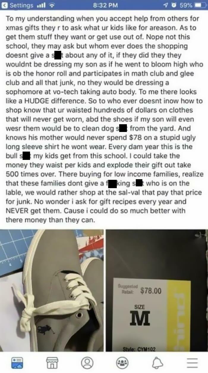 I Went To High School With This Woman. She Doesn’t Have A Job And Makes A Post Like This Every Christmas Complaining About The Free Gifts Her Family Receives